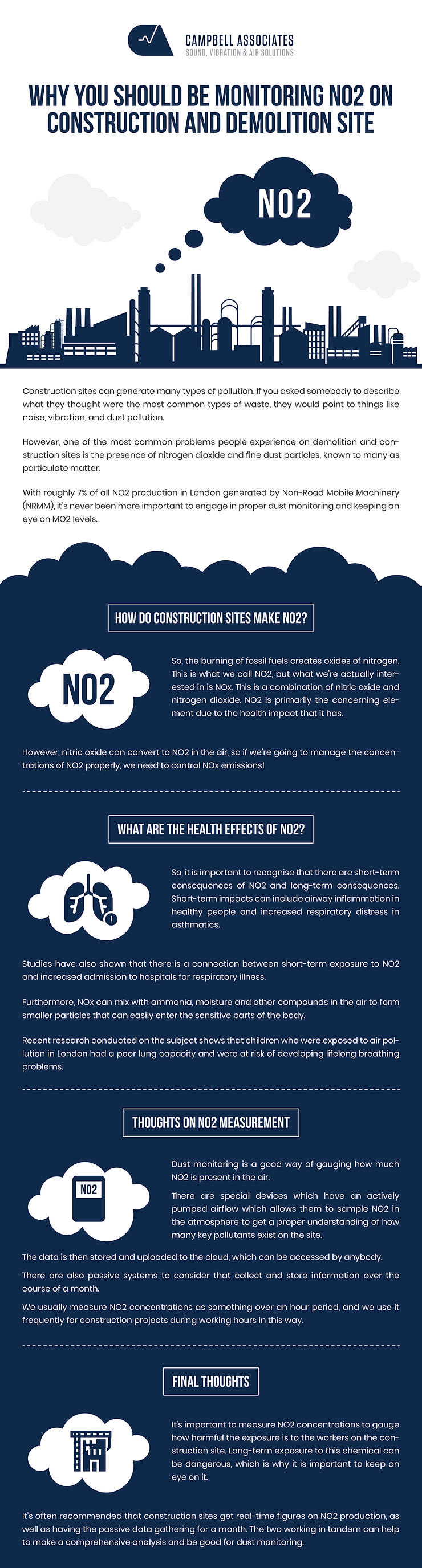 It’s important to measure NO2 concentrations to gauge how harmful the exposure is to the workers on the construction site. Long-term exposure to this chemical can be dangerous, which is why it is important to keep an eye on it.
