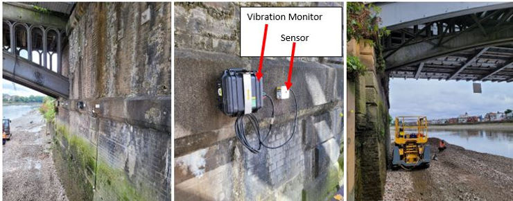 For the construction of the new footbridge, crack and vibration monitors were installed to monitor potential damage on the footings of Barnes Bridge, which crosses the Thames in the London Borough of Hounslow. All monitors are fully automated with batteries lasting several months for vibration and years for crack monitors. Each crack monitor has 2 sensors connected to precisely measure the crack distance and report data hourly to the cloud-based management system for alerting and reporting. Temperature is also measured in parallel to help establish the natural movements of the structure as it heats and cools.